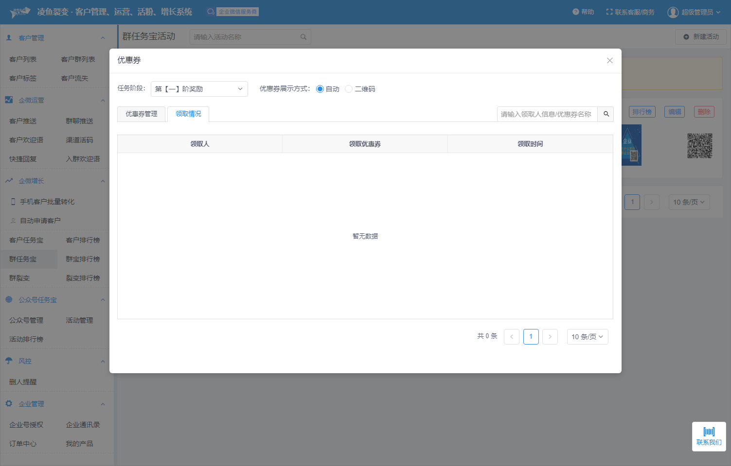 ### 查看领取情况 上传优惠券,用户完成任务后,可以在h5页面领取对应奖励
