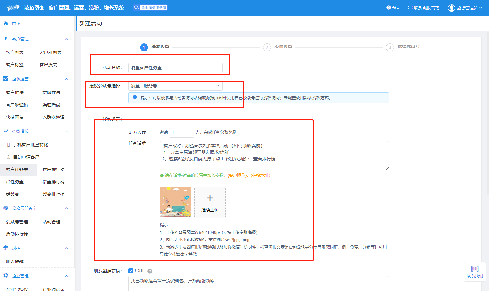 助力人数:设置客户需要几个人完成助力才可以领取奖励
