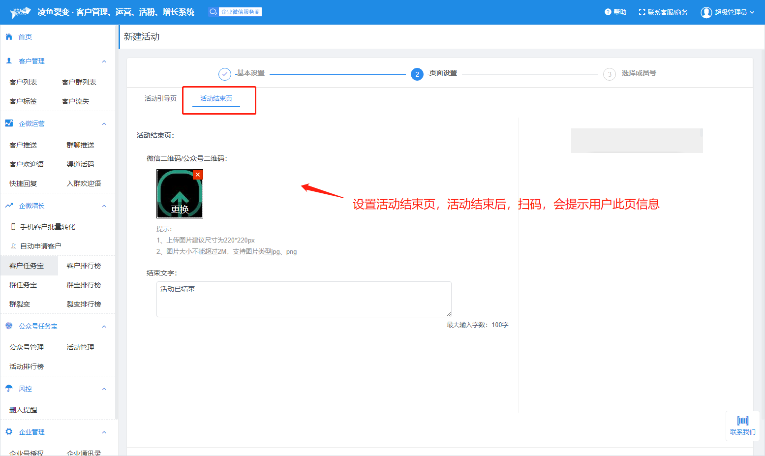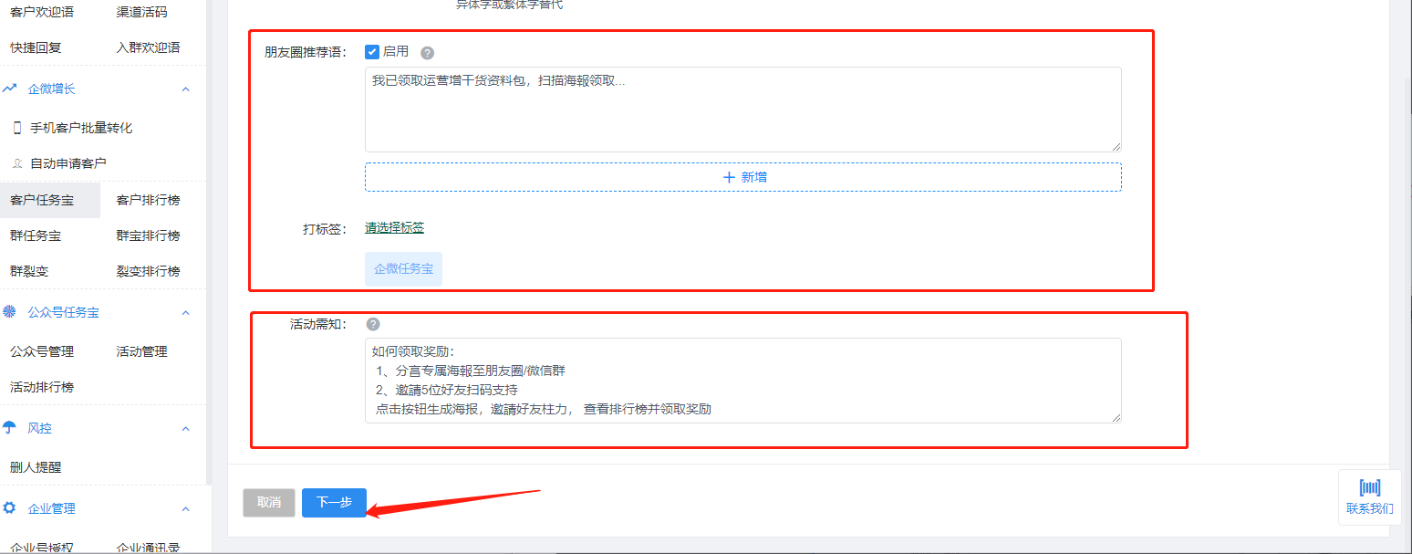 任务话术:新客户扫活码参加活动,自动触发任务引导话术和生成专属海报
