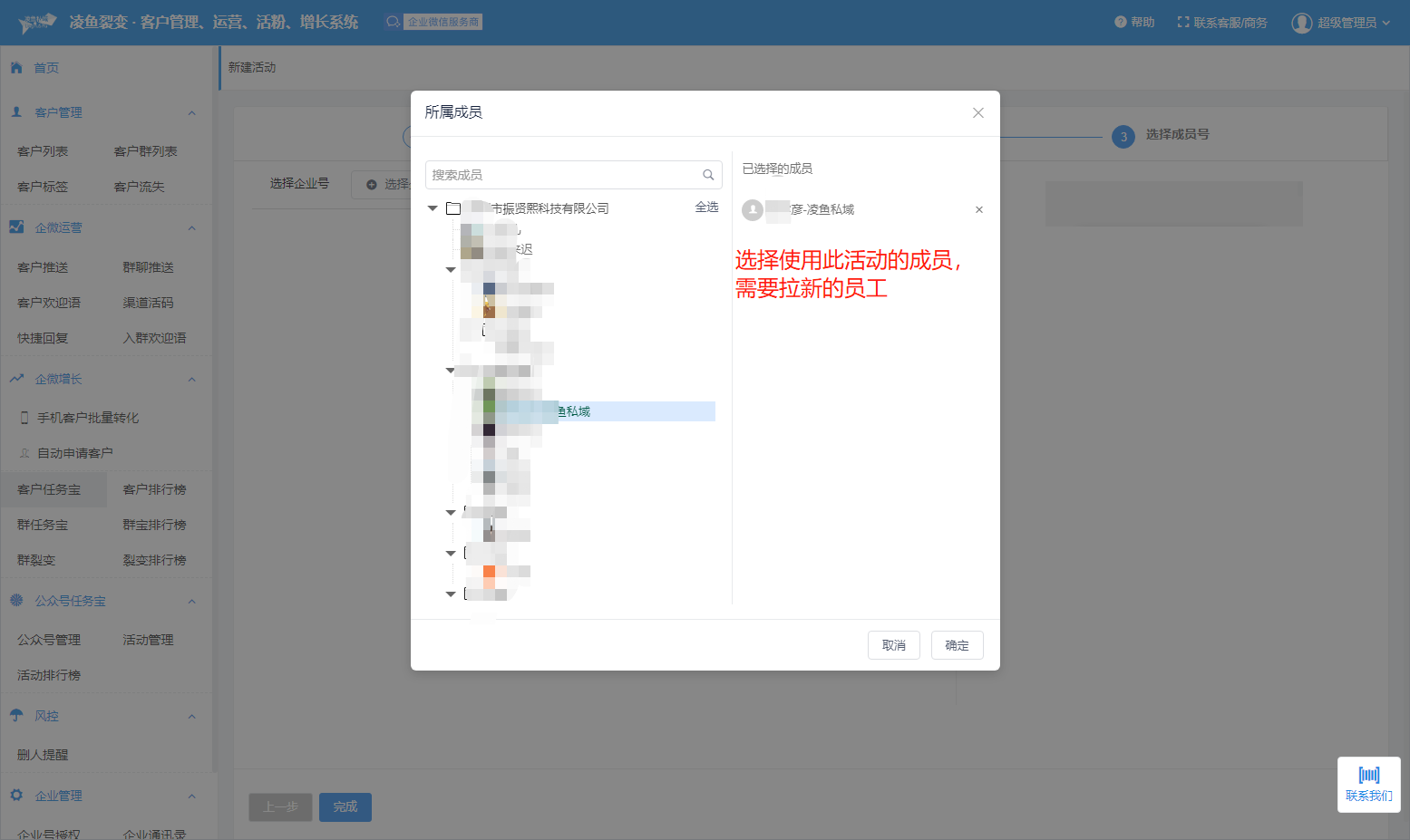5、设置企业成员: